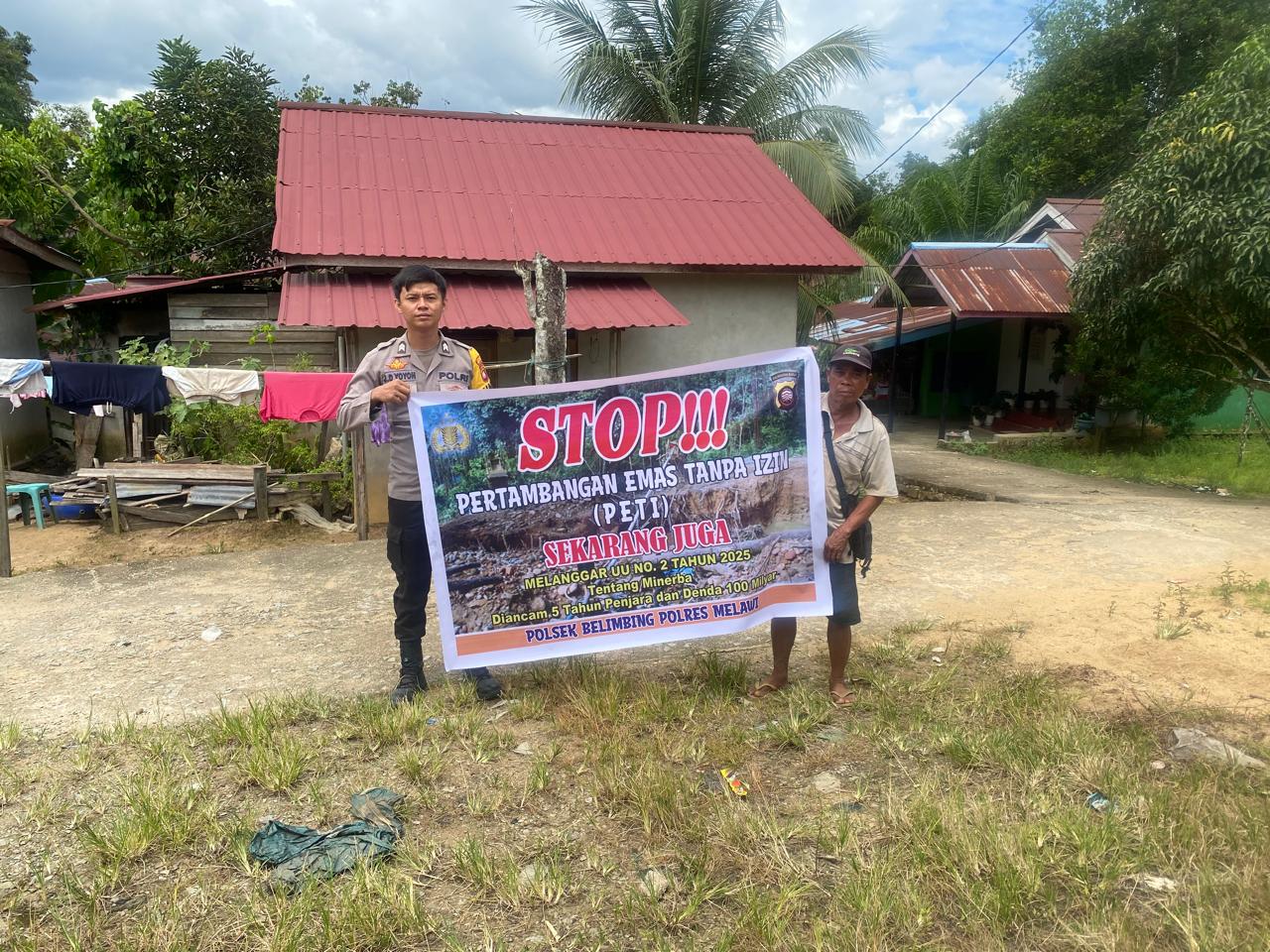 Polsek Belimbing Polres Melawi Polda Kalbar – Upaya mensosialisasikan Stop Pertambangan Emas Tanpa Ijin (PETI) di lakukan Polsek Belimbing langsung kepada masyarakat, Jumat (16/5/25).