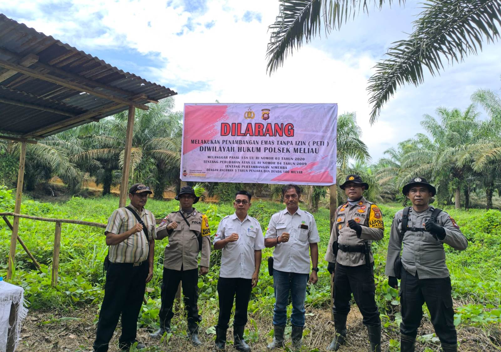 Dalam upaya menekan aktivitas Penambangan Emas Tanpa Izin (PETI) yang merusak lingkungan dan melanggar hukum, Polsek Meliau bersama PT. BHD melaksanakan kegiatan pemasangan banner larangan PETI di wilayah Kecamatan Meliau, Kabupaten Sanggau.