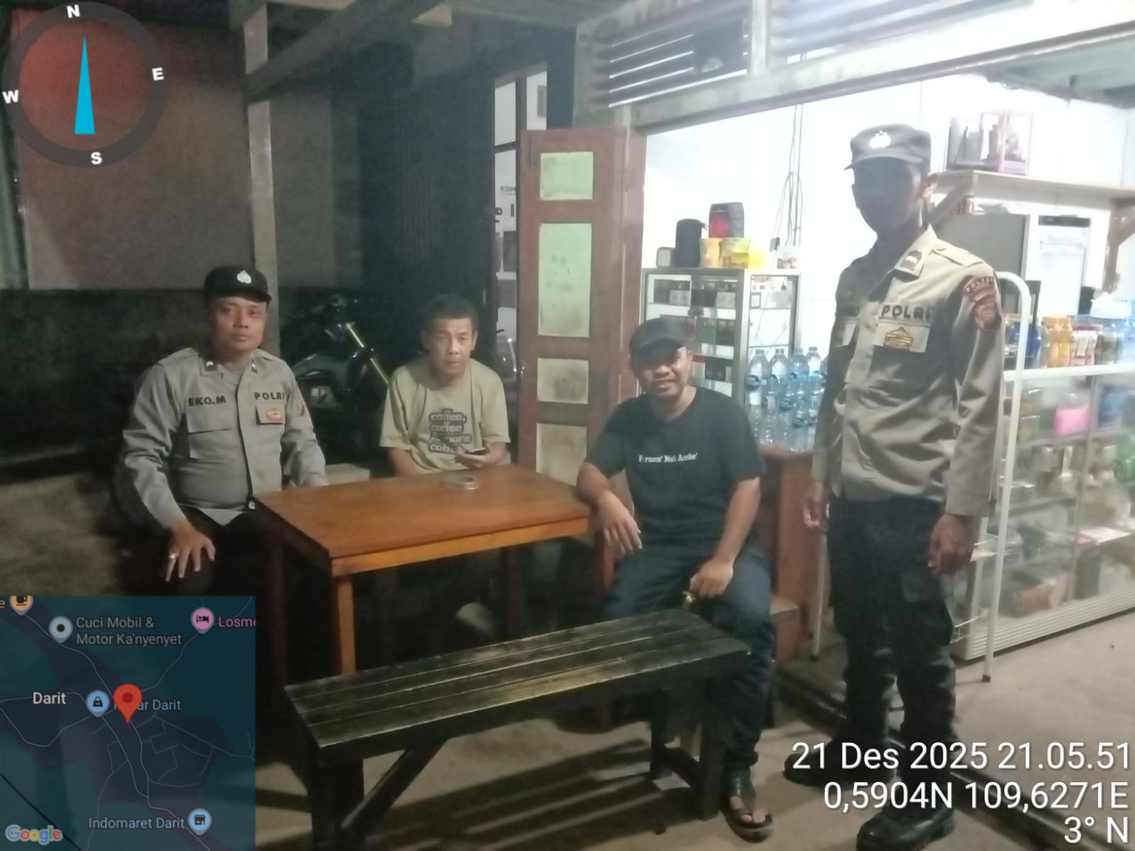 POLRES LANDAK – MENYUKE, POLDA KALBAR, Kegiatan yang di lakukan oleh Kepala Sentral Pelayanan Kepolisian Terpadu regu II Polsek Menyuke dan Anggota gencar melakukan patroli dialogis Pada malam hari, guna mencegah terjadinya gangguan kamtibmas, Rabu (21/12/2025) Malam.