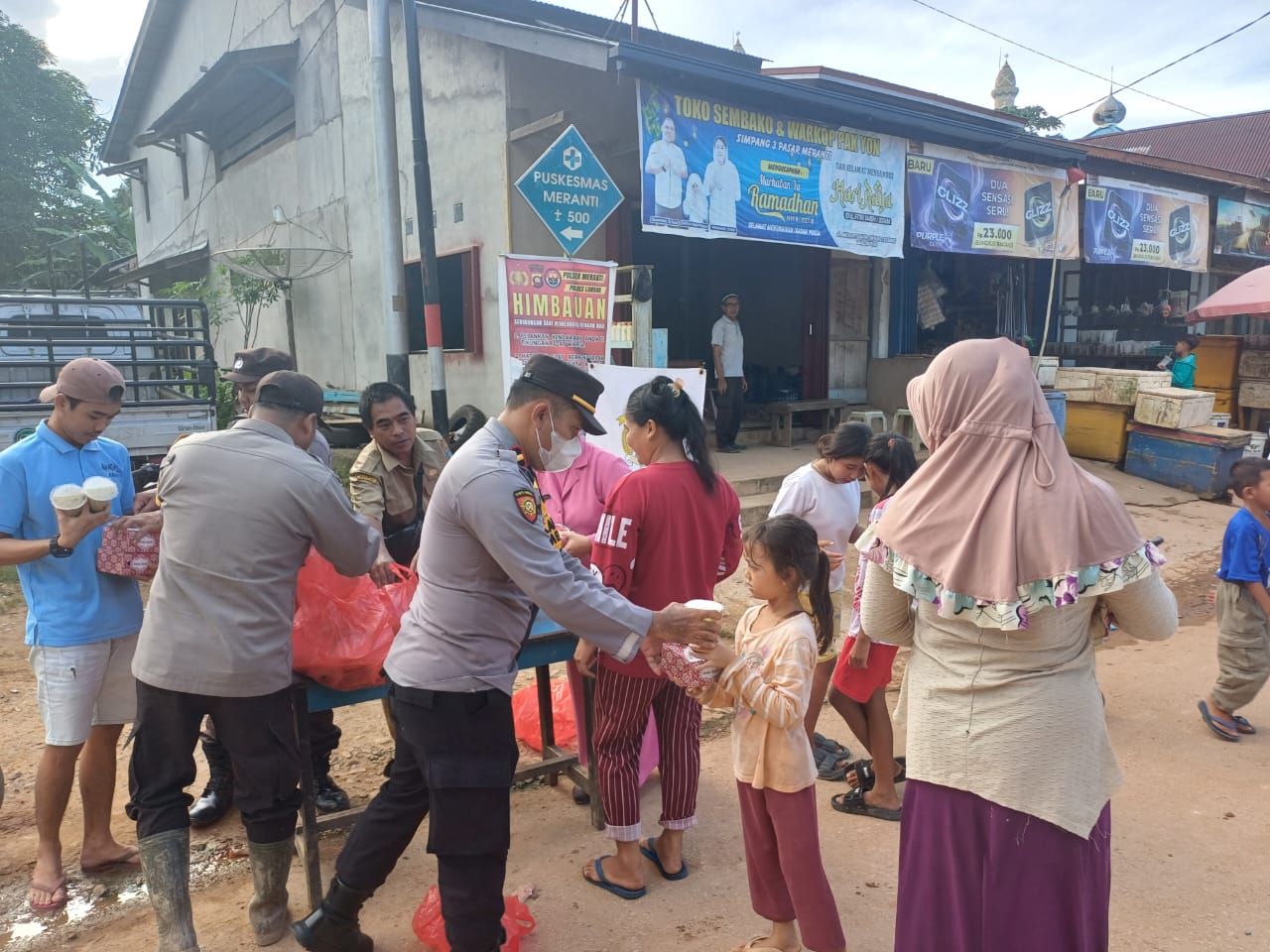 Polsek Meranti Polres Landak Polda Kalbar melaksanakan Giat Pembagian Takjil di Dusun Meranti Hulu Desa Meranti Kecamatan Meranti Kabupaten Landak