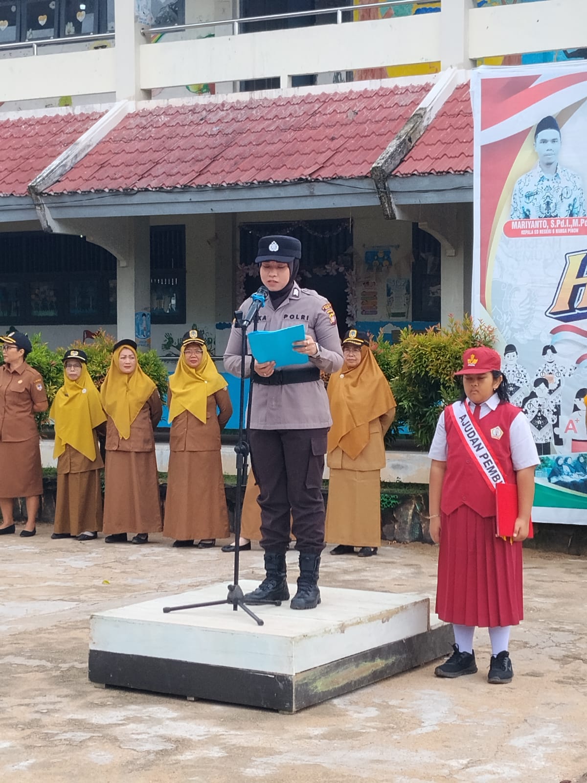 Kapolres Melawi Polda Kalbar AKBP Harris Batara Simbolon, S.I.K., S.H., M.Tf.Opsla menyampaikan Kehadiran Polwan sebagai pembina upacara diharapkan dapat menjadi inspirasi bagi para pelajar, khususnya siswi, untuk terus berprestasi dan berani meraih cita-cita.
