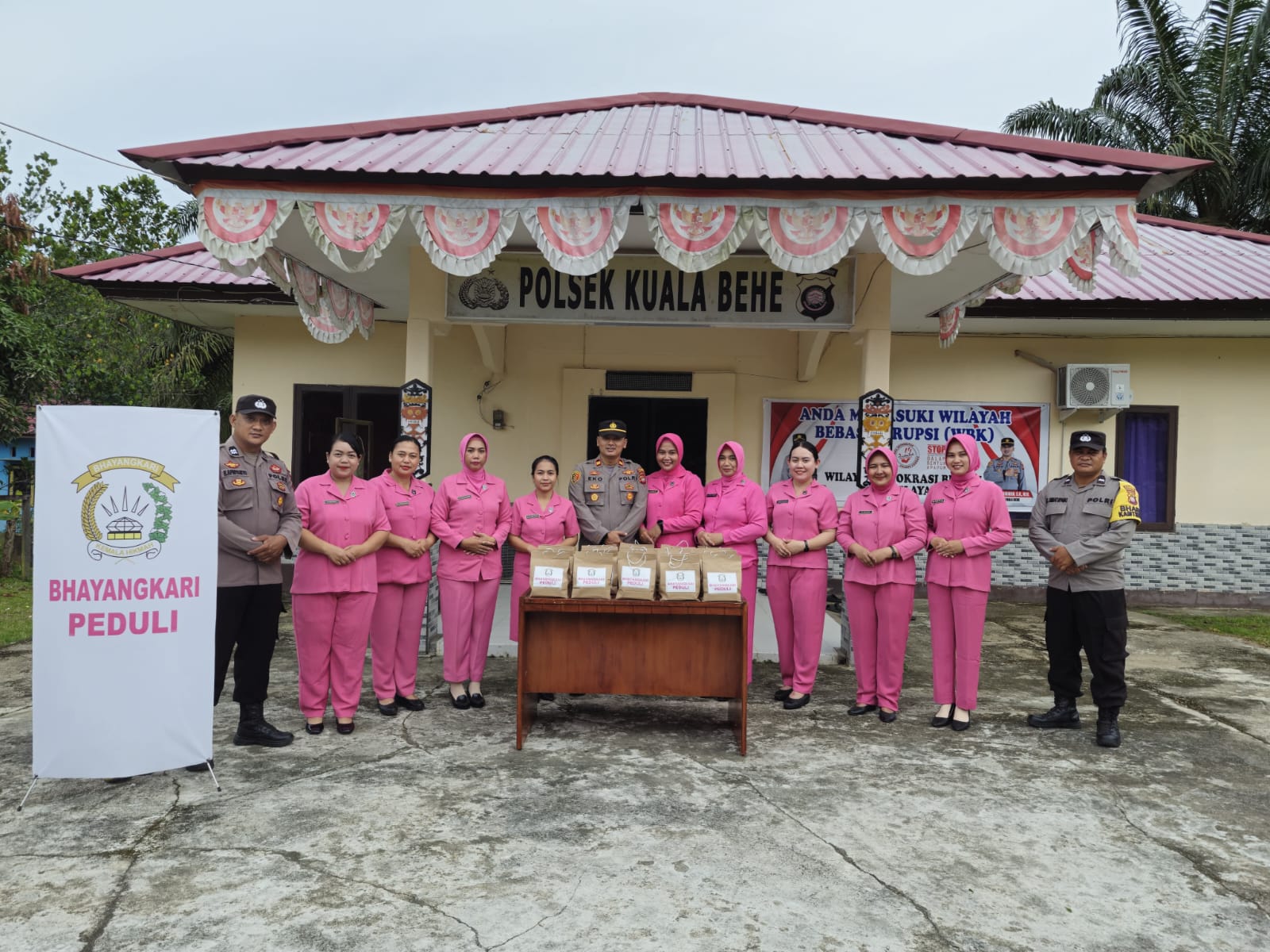 Kegiatan tersebut dipimpin langsung oleh Kapolsek Kuala Behe, IPTU Eko Kurniawan S.H., M.H., dan turut dihadiri oleh Ketua Bhayangkari Ranting Kuala Behe, Ny. Murni Eko, bersama pengurus dan anggota Bhayangkari Ranting Kuala Behe serta anggota Polsek Kuala Behe.