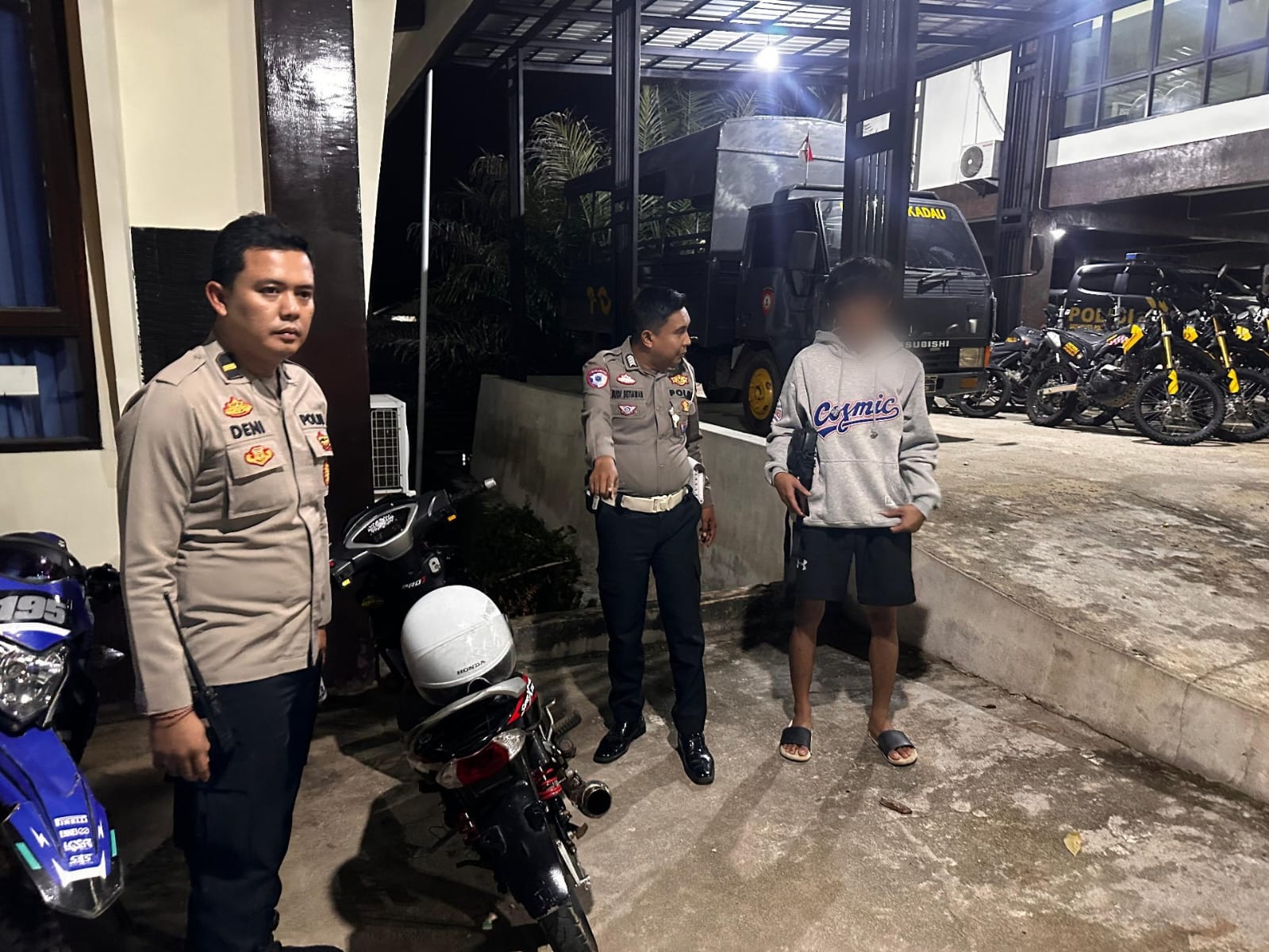 Dari hasil pemeriksaan di lapangan, petugas mendapati satu unit sepeda motor Honda Supra X yang masih dikendarai oleh remaja tersebut. Kendaraan dan pengendaranya kemudian dibawa ke Pos Penjagaan Polres Sekadau untuk diamankan dan dimintai keterangan. Setelah itu, piket Lantas mengamankan sepeda motor tersebut ke Pos Lantas, sementara pemiliknya diminta pulang dan diwajibkan datang kembali ke Pos Lantas pada pagi harinya untuk proses lebih lanjut.