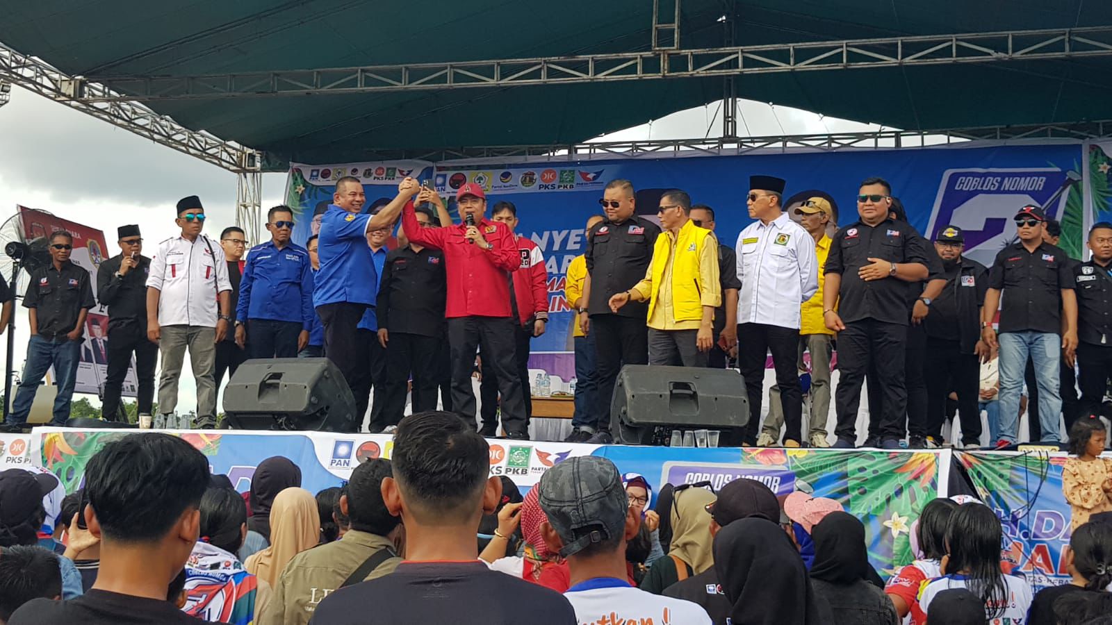 Ketua DPRD Kabupeten Melawi Hendegi Januardi Usfa Yusra, S.IP dan seluruh Ketua Partai Pengusung, Partai Pendukung dan 28 Anggota DPRD Kabupaten Melawi, Simpatisan, Pendukung, Kader Partai, Ormas, serta ribuan masyarakat yang hadir dalam Kampanye Akbar Damai.