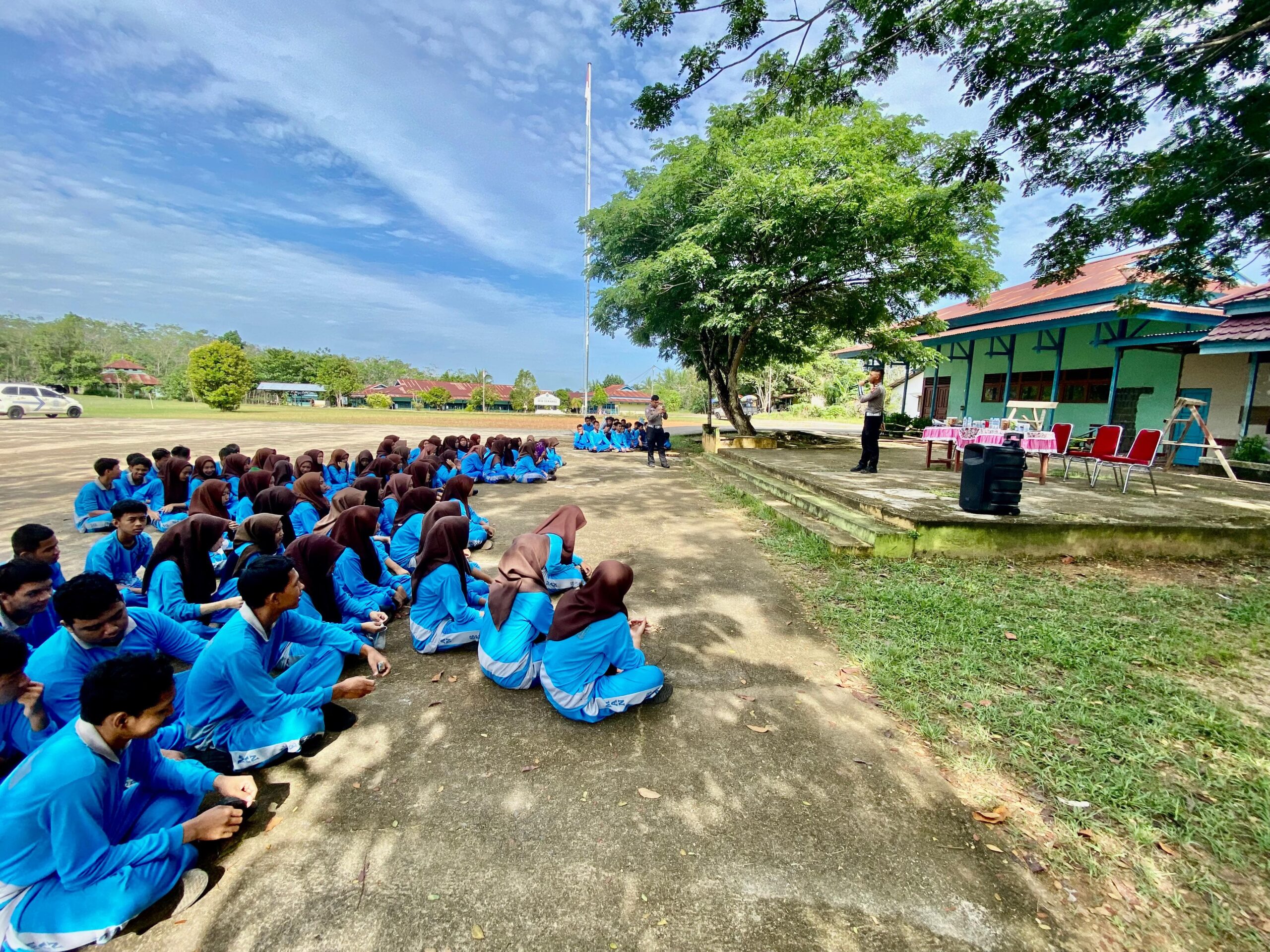 Sebagai bentuk dukungan, seluruh siswa MAN Sekadau menyatakan komitmennya menolak penggunaan knalpot brong melalui aksi simbolik dengan membentangkan spanduk bertuliskan “Stop Penggunaan Knalpot Brong”.