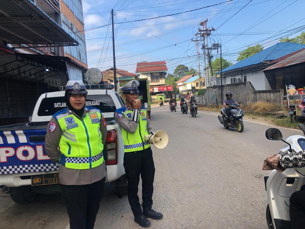 Satlantas Polres Sekadau kembali menyasar masyarakat lewat kegiatan penerangan keliling (Penling) di Jalan Irian, Kecamatan Sekadau Hilir, Kamis (4/12/2025). Dalam kegiatan ini, Ps. Kanit Kamsel Aipda Yuni Iswandi menyampaikan imbauan agar warga semakin disiplin saat berkendara.