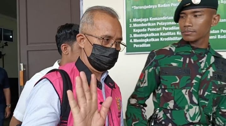 Dia hanya mengangkat tangan kirinya pertanda tak ingin memberi keterangan sedikitpun kepada awak media. Dikawal aparat, ia langsung menuju mobil meninggalkan Kantor Pengadilan Tipikor Pontianak yang berlokasi di Jalan Uray Bawadi, Kota Pontianak.