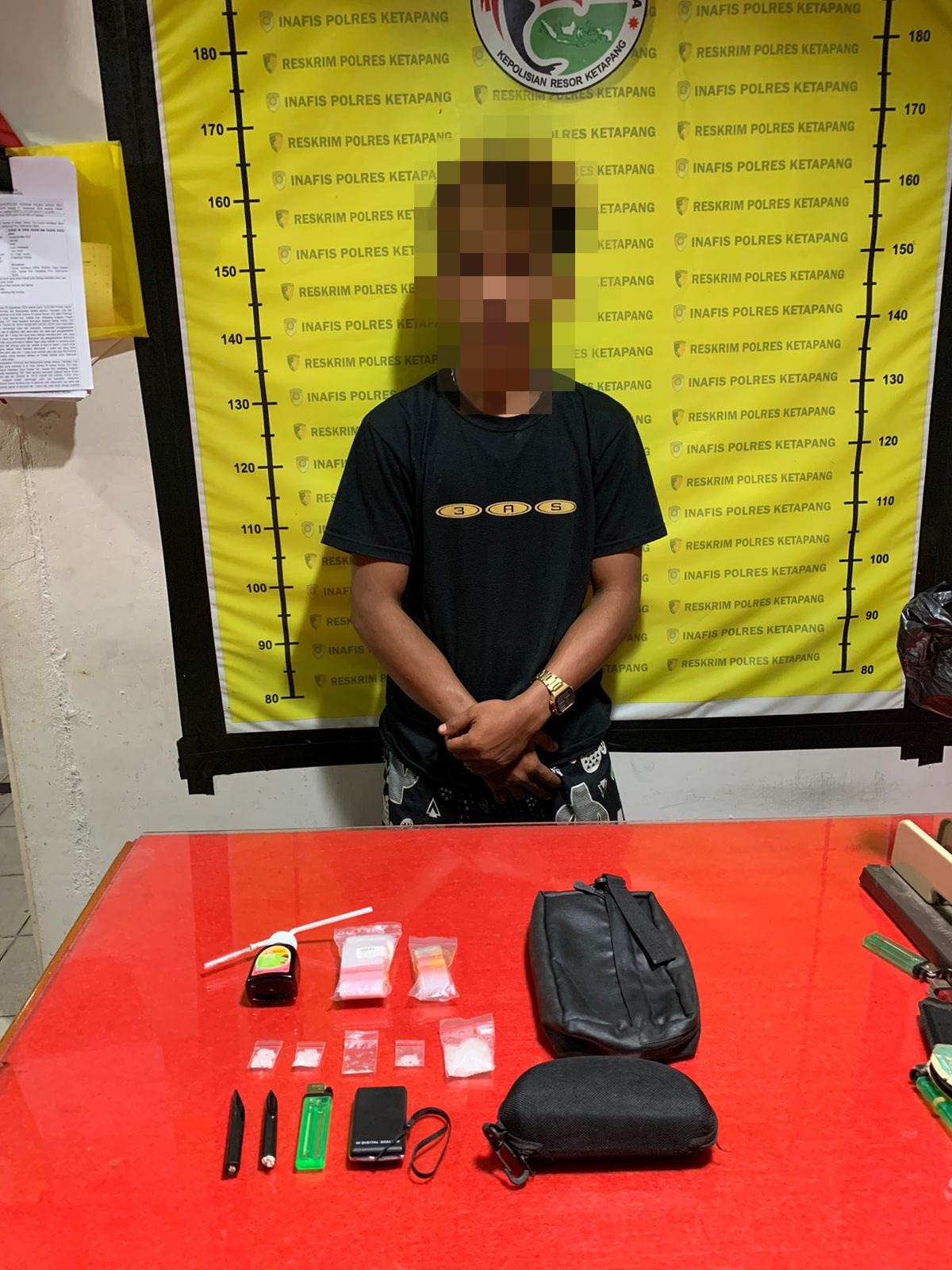 Kapolres Ketapang AKBP Setiadi, S.H., S.I.K., M.H., melalui Kasat Reserse Narkoba AKP Aris Pramudji Widodo, S.A.P., mengungkapkan bahwa dari hasil penggeledahan di mobil dan dirumah pelaku, petugas menyita 5 kantong plastik klip yang berisikan serbuk kristal diduga shabu dengan total berat 10,46 gram Brutto, 2 buah timbangan digital, 2 buah botol alat hisap bong, 3 buah sendok sabu, 1 buah tas serta sebuah mobil Toyota Agya yang digunakan pelaku untuk membawa barang haram tersebut.