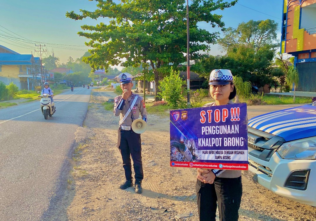 Kanit Kamsel Satlantas Polres Sekadau, Aipda Yuni Iswandi menjelaskan, kegiatan ini merupakan langkah edukatif untuk menekan penggunaan knalpot tidak standar yang sering meresahkan warga.