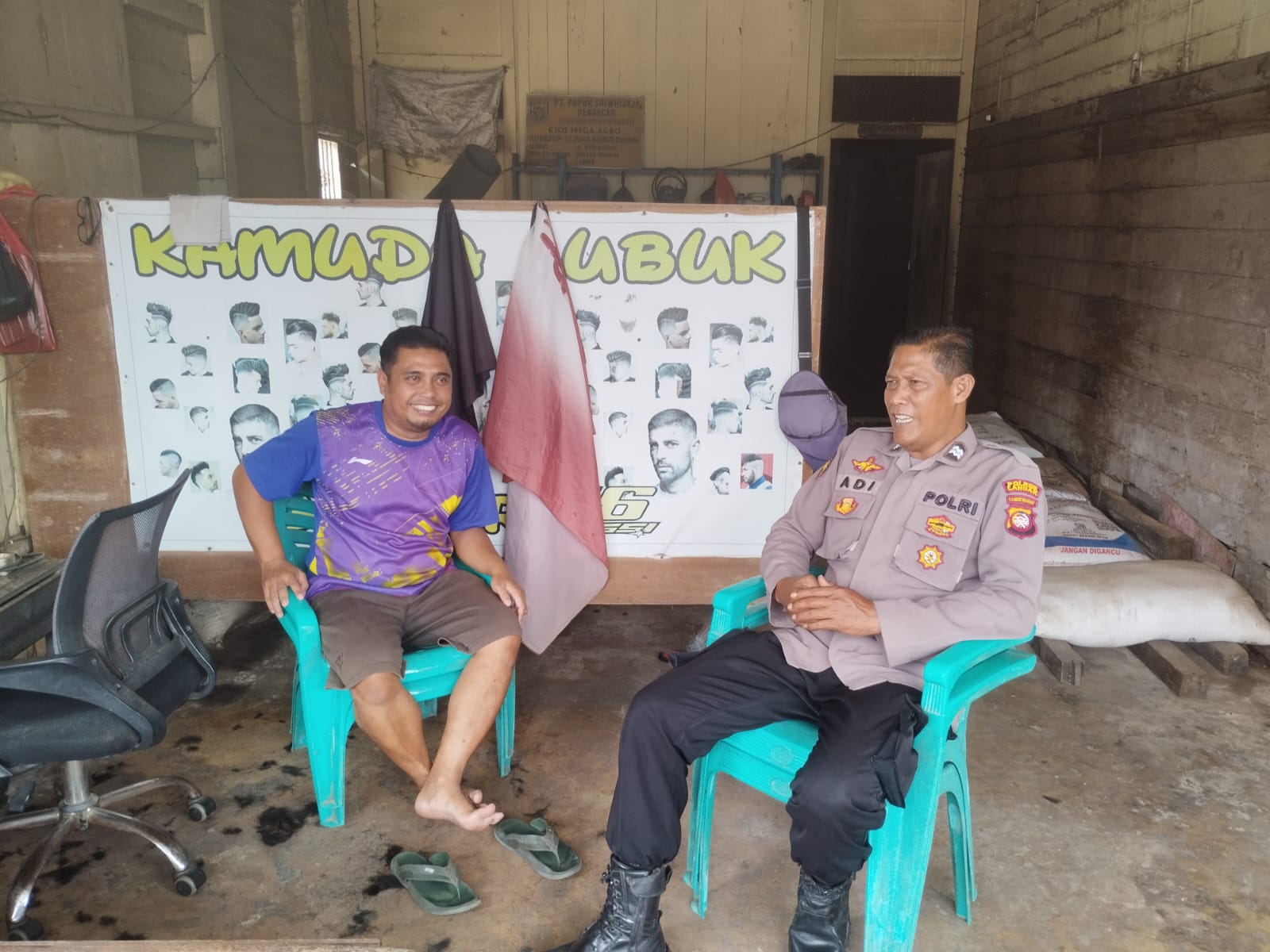 Polsek Mandor~ Polres Landak ~ Polda Kalbar ~ Suasana penuh keakraban terlihat saat anggota kepolisian menyambangi warga di salah satu tempat usaha potong rambut di wilayah Kecamatan Mandor. Kebersamaan sederhana ini menunjukkan kedekatan antara polisi dan masyarakat yang terus terjalin dengan baik. Jumat (6/3/2026)