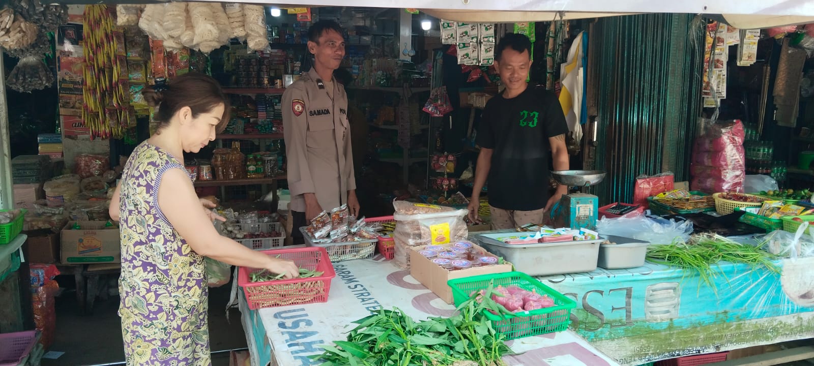 Pada kesempatan tersebut, polisi juga berikan himbauan kepada penjual sayur agar tetap waspada terhadap situasi di sekitar serta ikut berperan dalam menjaga keamanan lingkungan.