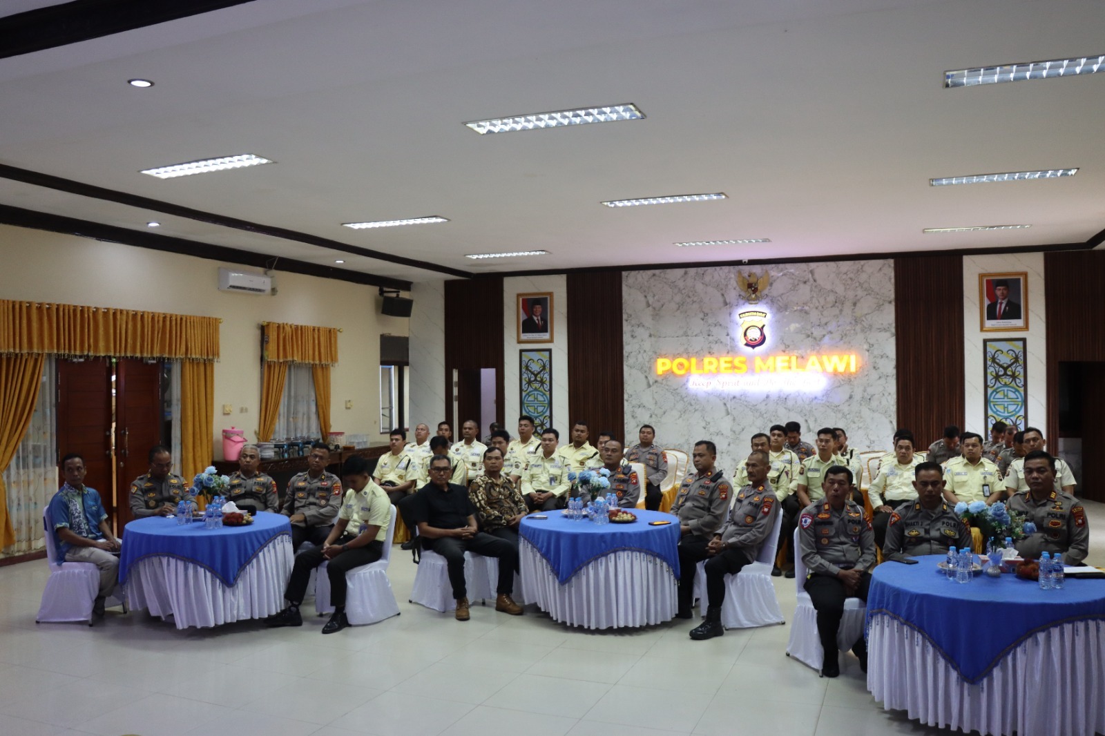 Kegiatan tersebut dihadiri langsung oleh Kapolres Melawi AKBP Haris Batara Simbolon, S.I.K., S.H., M.Tr. Opsla yang didampingi Wakapolres Melawi Kompol Aang Permana, S.I.P., S.H., M.A.P., serta para Kabag, Kasat, dan Kasi Polres Melawi. Turut hadir pula para pimpinan pengguna Satpam serta seluruh anggota Satpam se-Kabupaten Melawi.