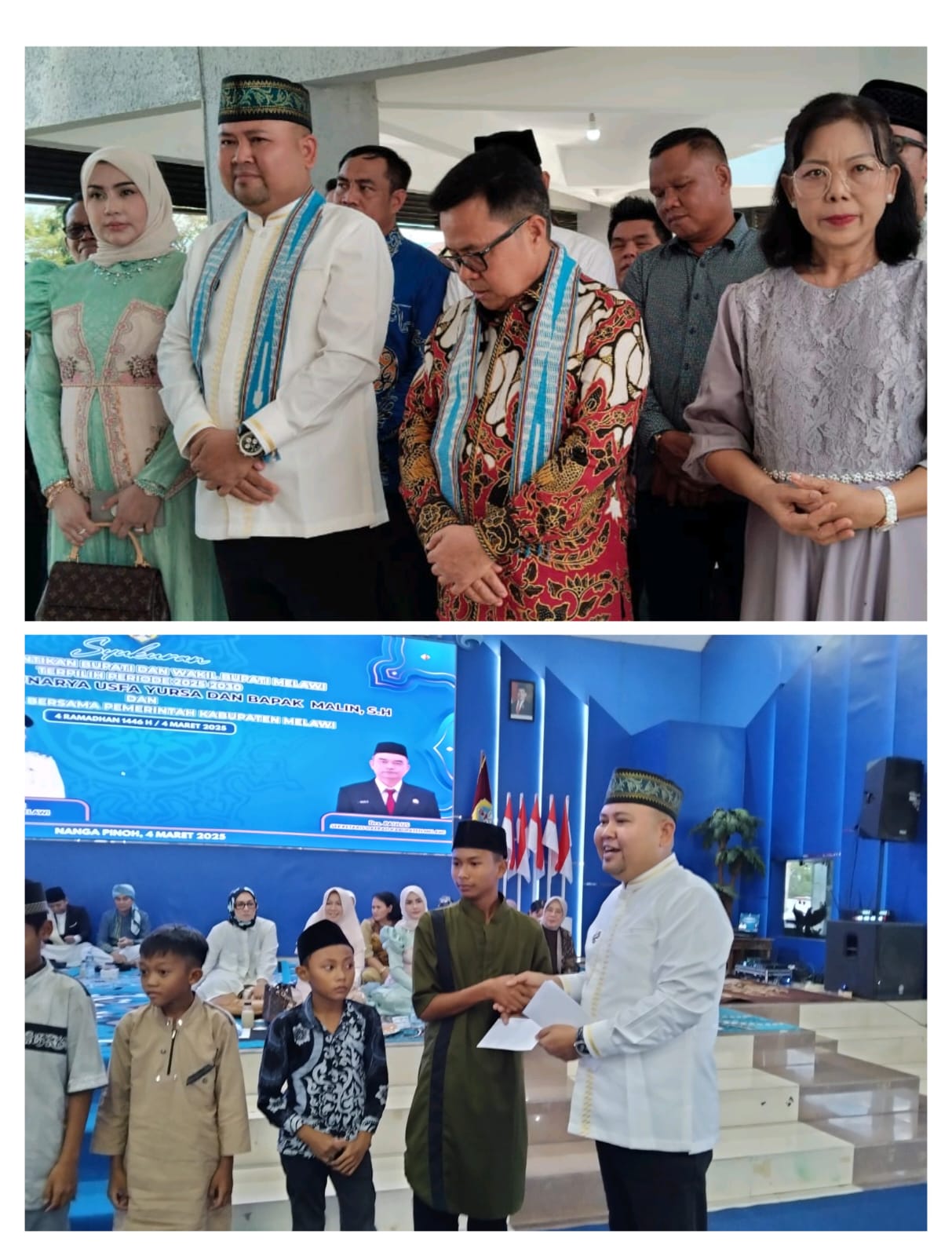 Pemerintah kabupaten Melawi Gelar Tasyakuran atas di lantiknya Bupati Melawi H.Dadi Sunarya Usfa Yursa S.pd Dan Wakil Bupati Melawi Malin S.H di sambut dengan upacara adat pemotongan ompong dan tarian dilanjutkan buka bersama Di Aula pendopo Bupati Melawi, Selasa(4/3/25).