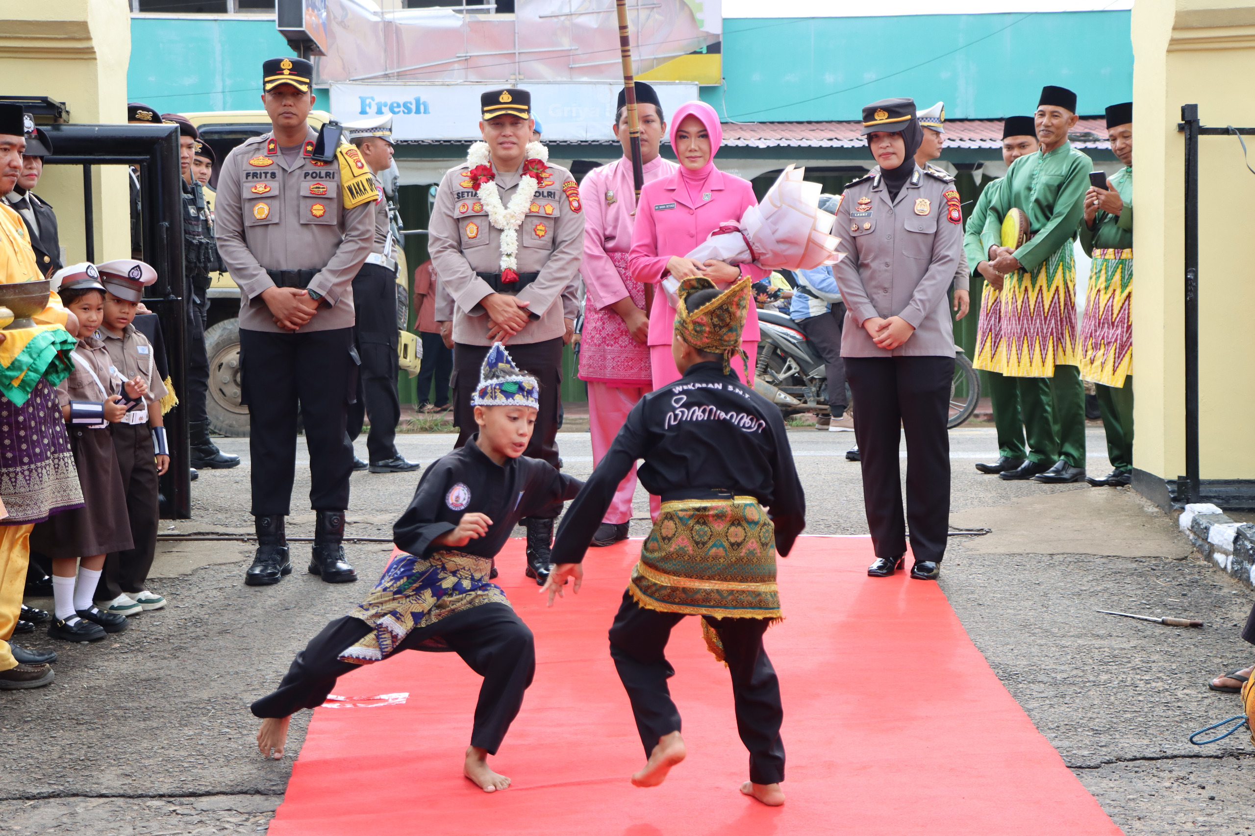 Didampingi istri, Kapolres Ketapang yang tiba di Mako Polres Ketapang langsung disambut dengan pengalungan dan penyerahan buket bunga oleh polisi cilik dari TK Bhayangkari Ketapang. Dilanjutkan dengan tradisi adat seperti Pencak Silat serta tepung tawar yang dilanjutkan dengan melewati jejeran pedang pora bersilang yang dibuka secara perlahan oleh barisan perwira, untuk membukakan jalan memasuki halaman Polres Ketapang.