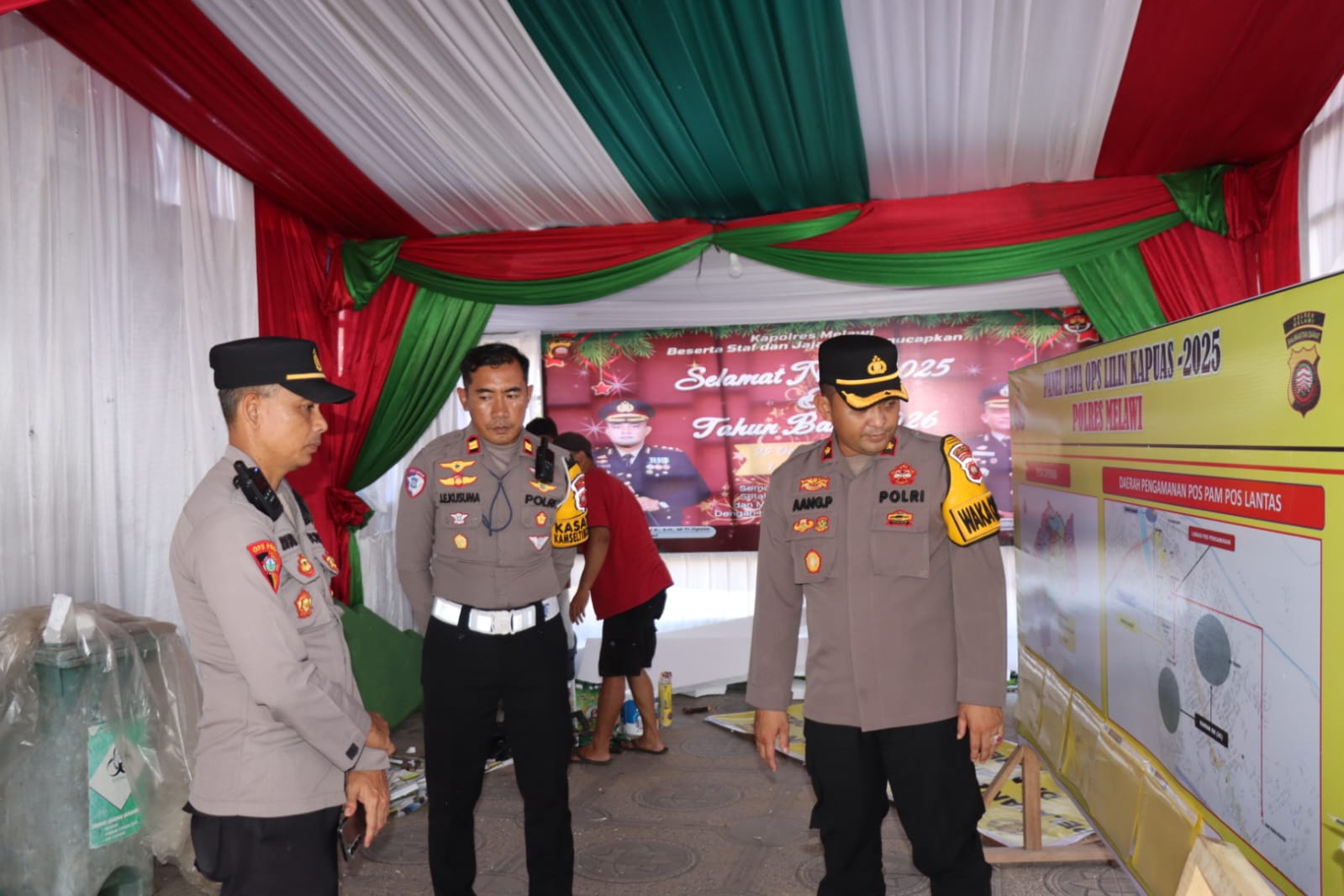 *Polres Melawi Polda Kalbar* – Wakapolres Melawi, Kompol Aang Permana, S.I.P., S.H., M.A.P., Selaku Waka Opsres melakukan pengecekan kesiapan Pos Pelayanan dan Pos Pengamanan Operasi Lilin Kapuas 2025, Jumat (19/12/2025).
