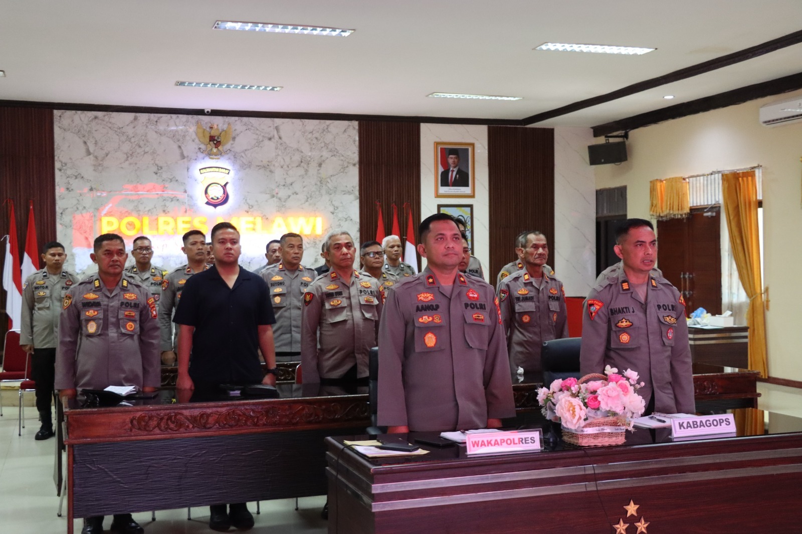 Pelaksanaan Zoom Meeting di Aula Tribrata Polres Melawi berlangsung dengan tertib dan penuh khidmat. Seluruh peserta tampak serius menyimak arahan dan penekanan pimpinan terkait pelaksanaan tugas kepolisian, peningkatan kinerja, serta upaya menjaga situasi keamanan dan ketertiban masyarakat (kamtibmas) agar tetap kondusif.