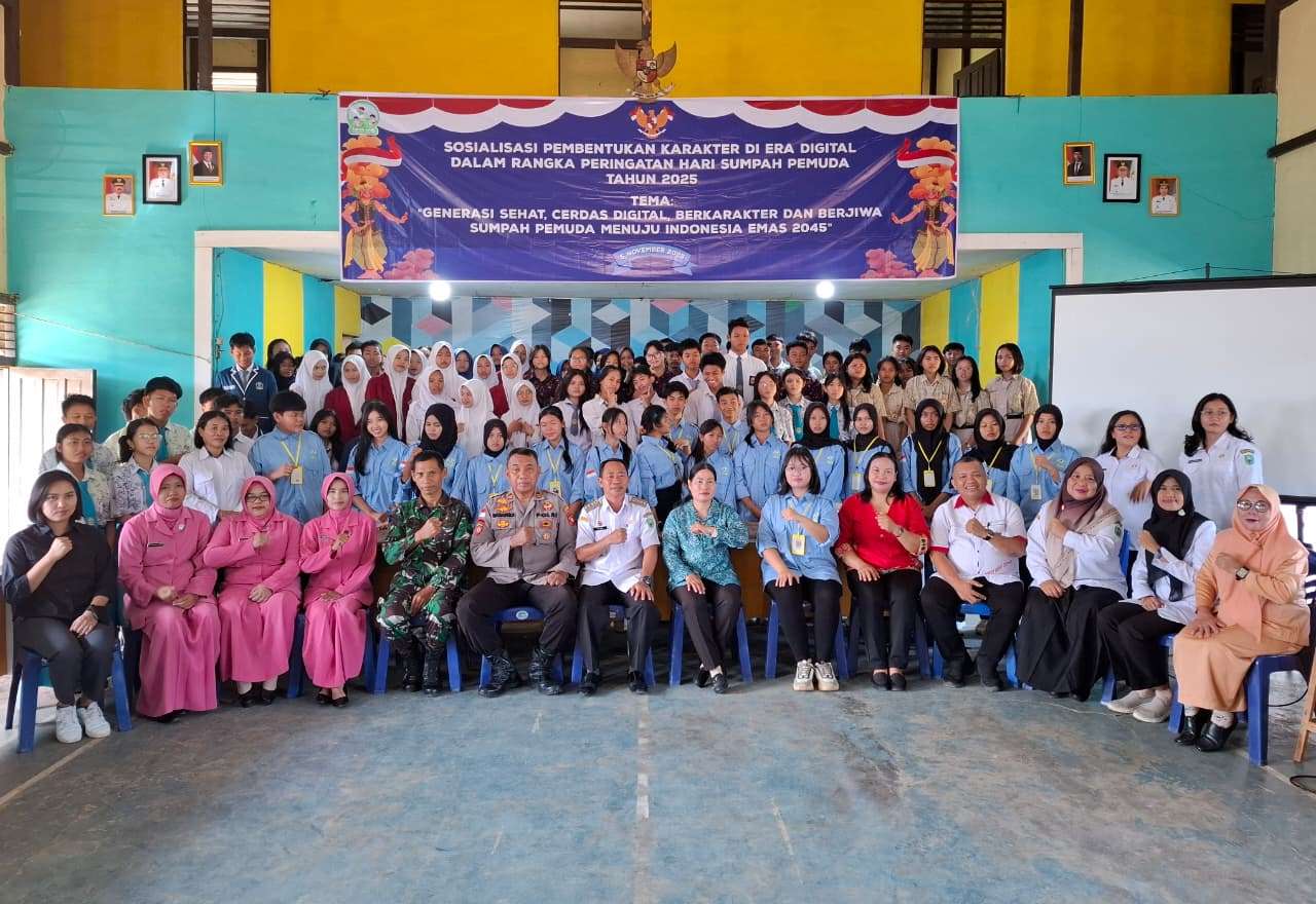 Sanggau, Polda Kalbar – Dalam semangat memperingati Hari Sumpah Pemuda Tahun 2025, Pemerintah Kecamatan Tayan Hilir menggelar kegiatan Sosialisasi Pembentukan Karakter di Era Digital bertema “Generasi Sehat, Cerdas Digital, Berkarakter, dan Berjiwa Sumpah Pemuda Menuju Indonesia Emas 2045”, Rabu (5/11/2025) pagi di Gedung Serba Guna Kecamatan Tayan Hilir, Kabupaten Sanggau.