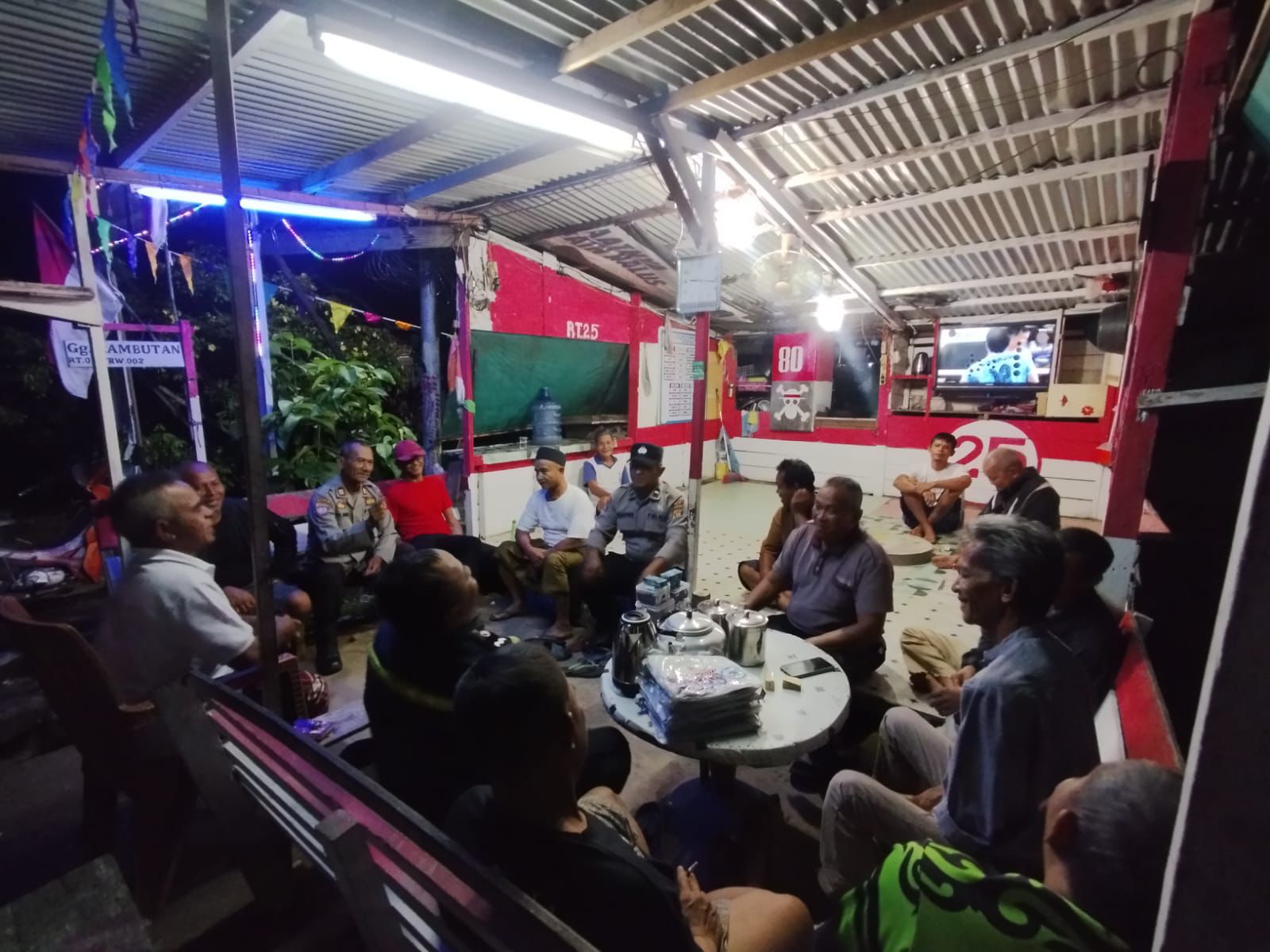 Dalam kegiatan tersebut, Satbinmas menyerahkan bantuan sarana kontak dari Kapolres Melawi berupa TV, senter, jas hujan, serta perlengkapan minum, sekaligus menyampaikan pesan kamtibmas agar masyarakat meningkatkan kewaspadaan, menjaga kondusifitas, dan tidak mudah terprovokasi isu yang dapat mengganggu keamanan.